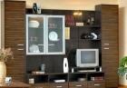 Мебельный комплект для гостиной комнаты. Цвет: корпус: Венге фасад: Венге светлое, Макассар, Зебрано африканск.В состав входят: пенал, витрина, подставка.