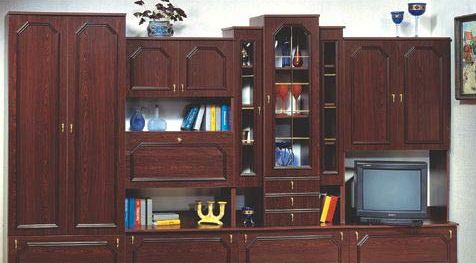 Мебельный комплект для гостиной комнаты GERBOR. Цвет: В состав входят: шкаф 2-дверный, секция РТВ, витрина, бар. махонь.